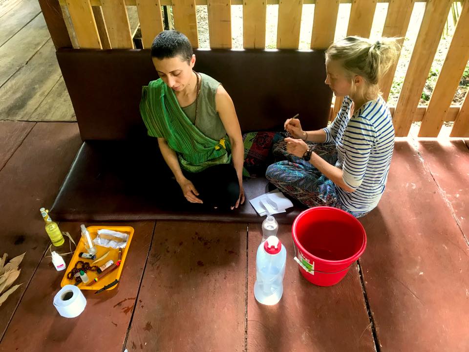 I joined the training in the Peruvian rainforest of Kambo Naturista with a mere desire to express my gratitude to Kambo because it helped me overcome the 15-year-long addiction and induced the most profound changes in my life, ways of being, and habits. Initially, I did not intend to be a practitioner myself. However, it was during the silent retreat and dieta in the jungle, when I had a profound surrender and came to accept that I would serve the medicine, especially to people who suffer from (substance) addictions. During the dieta, icaro, a healing song for Kambo, in my mother tongue (Georgian), came to me, which I sing for every person I facilitate. The Icaro has a profound effect and truly aligns with medicine. Along with the spirit of Kambo, I am grateful to my teachers: Diedre (my sister, who introduced me to Kambo), Deyan (who trained and taught how to apply Kambo to myself and others in the safest conditions), and Gaera (who supported my quest in the process).